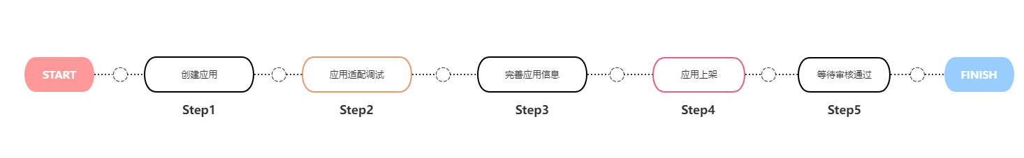 Step4:应用上架。应用调试通过后,可以点击“上架”按钮,进入应用上架页面,根据提示填写信息,确认填写好后点击“审核”按钮。提交审核后状态会变成“应用上架中”。